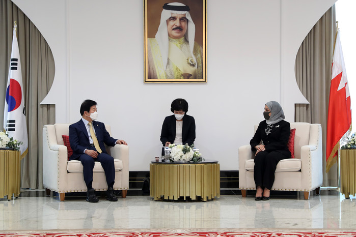 박 의장은 또 “코로나 위기 속에서 한국과 바레인 모두 락다운(Lockdown) 없이 개방성을 유지하고 있는 것은 세계의 모범사례”라면서 “바레인-사우디 연륙교 건설 사업, 경전철 사업, 국영석유회사의 에너지 플랜트 사업 등 기존의 협력 분야에 대해서는 관계를 심화·확대하고, 보건의료·방산·금융 분야는 새롭게 협력을 넓히길 희망한다. 의회도 이를 뒷받침하겠다”고 강조했다.