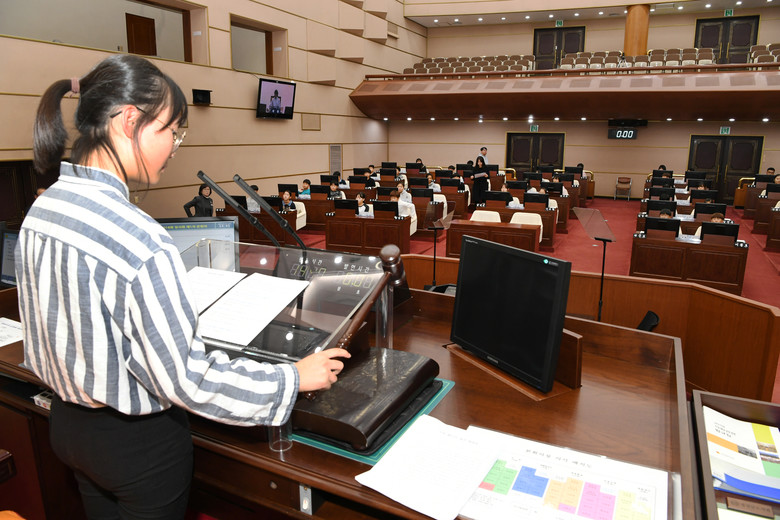 김진부 의장은 “청소년 모의의회를 통해 미래의 주역인 청소년들이 지방의회 운영을 직접 체험함으로써 성숙한 민주시민으로 성장할 수 있는 좋은 계기가 될 것으로 기대하며, 앞으로 도의회에서도 다양한 기회를 통해 청소년들과 소통할 수 있도록 노력하겠다.”고 말했다.