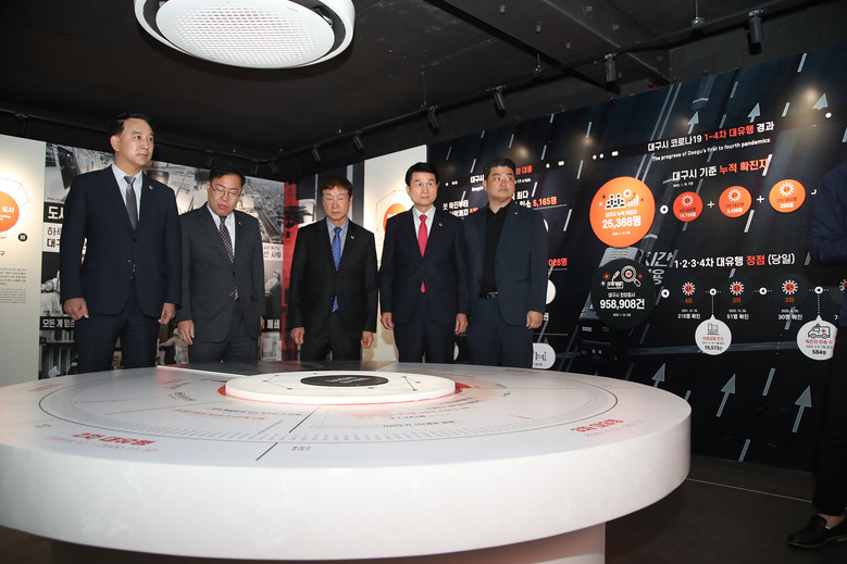 [대구 세계타임즈=한성국 기자] 대구시의회 기획행정위원회(위원장 임인환)는 제299회 임시회 기간인 3월 20일(월) 대구시 코로나 대응기록을 전시하는 ‘코로나19 기억의 공간’과 시민에게 다양한 건강관리서비스를 제공하는 ‘시민건강놀이터’를 찾아 현장을 둘러보고 시설 운영 현황을 면밀히 점검했다.