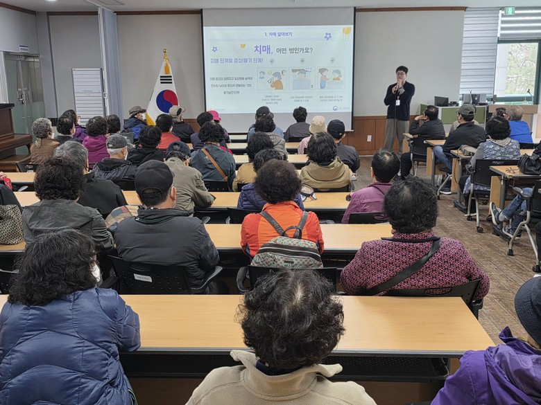 교육 전 치매안심센터 전문 인력이 인지선별검사(CIST)를 진행했으며, 이후 치매 주요 증상, 예방 수칙, 조기 검진의 중요성 등에 대한 강의가 이어졌다.