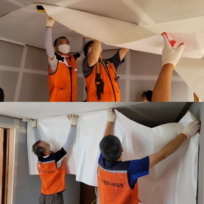 대동 행정복지센터 허기원 동장은 “오늘 사랑의 사다리 밴드에서 관내 수해주민 가정을 위해서 도배 및 장판 교체 봉사를 지원해 주어서 큰 힘과 위안이 된다.”면서 감사함을 전했다.