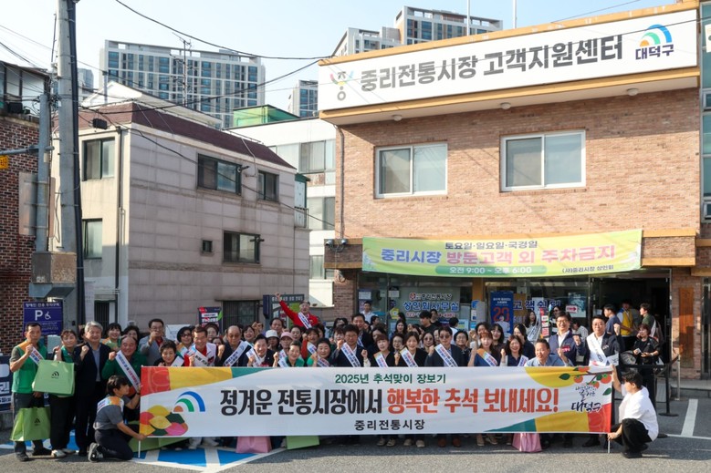 [대덕구 세계타임즈=이채봉 기자] 대전 대덕구(구청장 최충규)는 1일 신탄진·중리·법동 전통시장에서 ‘2025 추석맞이 전통시장 장보기’ 행사를 열고 상인 격려와 장보기 캠페인을 펼쳤다고 밝혔다.