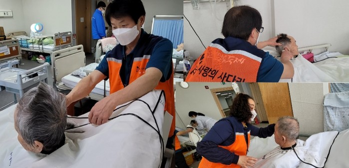 가양요양병원 김형성 행정원장은 “오늘 사랑의 사다리 밴드 봉사단체에서 미용봉사를 지원해 주어서 큰 힘과 위안이 된다.”면서 감사함을 전했다.