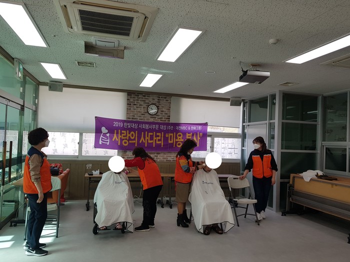 이날 봉사에는 송남석 단장을 비롯한 7명의 봉사자 회원들이 1층~3층에서 미용봉사를 하였다.