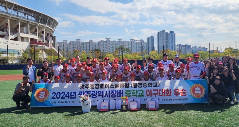[광주 세계타임즈=손권일 기자] 광주충장중학교 베이스볼클럽(이하 충장BC)이 지난 8~10일 광주무등경기장에서 열린 ‘2024년 광주광역시장배 중학교 야구대회’에서 우승컵을 들어올렸다.