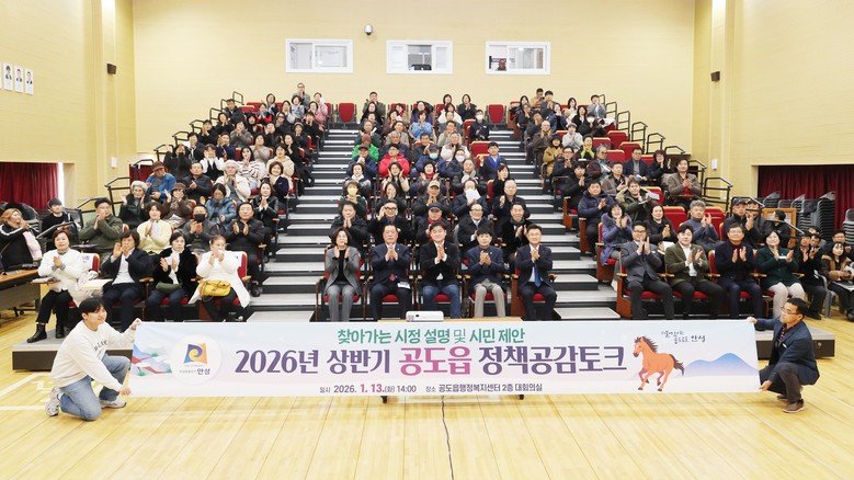 [안성시 세계타임즈=심하린 기자] 2026년 상반기 공도읍 정책공감토크가 150여명의 시민이 참여한 가운데 지난 1월 13일 공도읍행정복지센터에서 개최됐다.