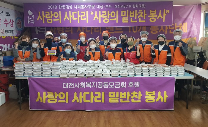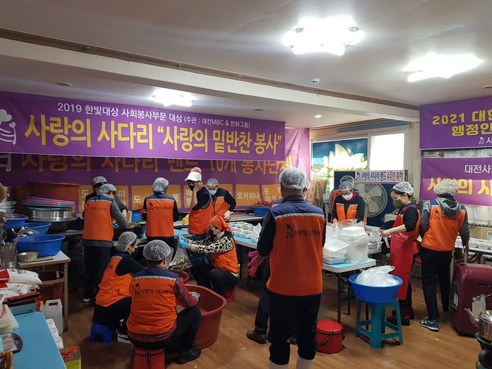 [대전=세계타임즈 이채봉 기자] 6년째 꾸준히 대전시 소외계층을 위해서 다양한 봉사를 펼치고 있는 대전시 봉사단체 사랑의 사다리 밴드(리더 이정제)는 14일 오전9시~오후12시에 밑반찬 3가지를 만들어서 서구지역 소외계층 60가정에 전달을 하였다.