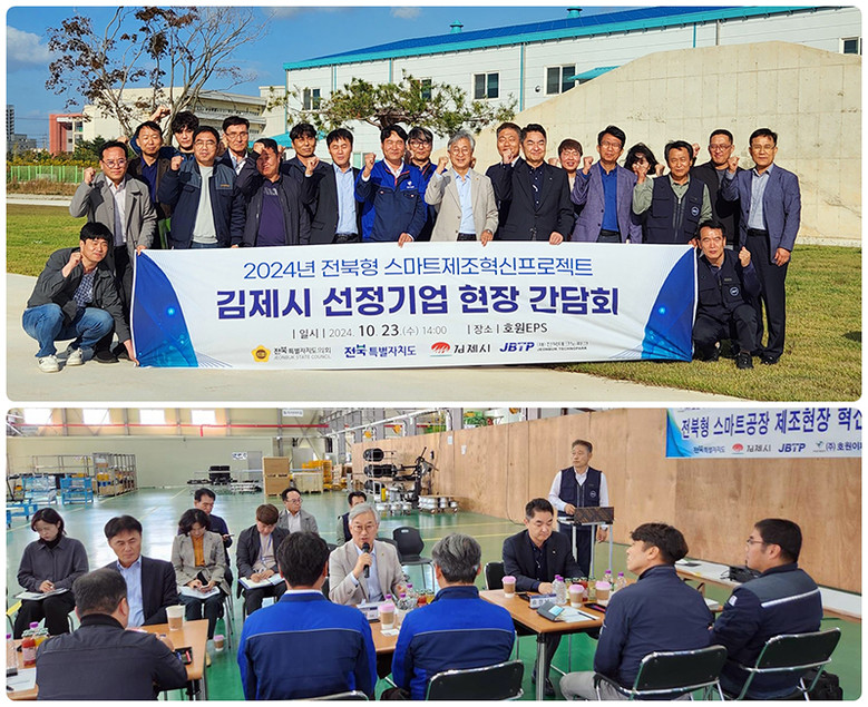이날 현장간담회에는 나인권 도의원과 전북테크노파크 이규택 원장, 전북자치도 최재길 이차전지탄소산업과장, 김정국 전북형 스마트공장 멘토 그룹장, 호원EPS 등 김제시 지원기업 대표 6명 등 30여 명이 참석해 스마트 제조현장 혁신활동 사업의 성과를 공유하고 향후 기업의 지원방향을 함께 모색했다.