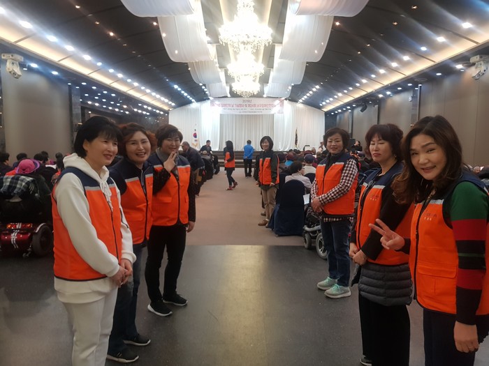 약 천여명의 서구장애인분들이 참석한 기념행사에서 사랑의 사다리 밴드 회원 50명은 오전 9시부터 교통봉사, 행사장 정리 및 안내를 하면서 원활한 행사 진행 봉사를 하였다.