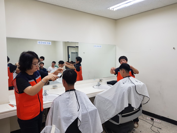 이날 미용봉사에는 송남석 단장을 비롯해서 김현옥, 이하영, 조선옥, 조은숙 가위천사들이 군장병 50명에게 미용봉사를 하였다.