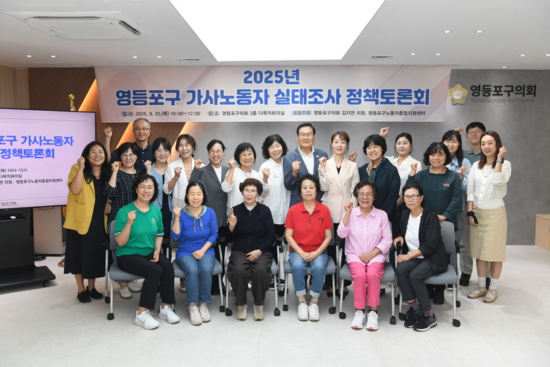 [영등포구 세계타임즈=이장성 기자] 영등포구의회 김지연 의원(도림동, 문래동)이 25일 오전 10시 영등포구의회 다목적회의실에서 ‘영등포구 가사노동자 실태조사 정책토론회’를 개최했다.