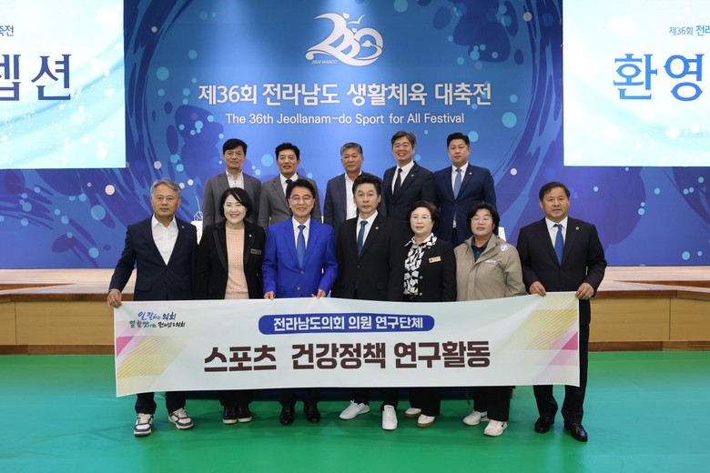 [전남 세계타임즈=우덕현 기자] 전라남도의회 의원 연구단체인 ‘스포츠 건강정책 연구회(대표의원 박성재)’ 의원들이 지난 10월 18일 완도 공설운동장에서 개최된 제36회 전라남도생활체육대축전 개회식에 참석하여 선수단을 격려했다.