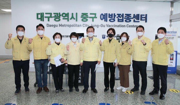 [대구=세계타임즈 한성국 기자] 대구광역시의회 감염병 대책 특별위원회(위원장 송영헌)가 30일(화) 코로나19 백신 지역 예방접종센터(중구 계명대학교 대구동산병원 별관)를 방문하여 의료진을 격려하고 현장의 애로사항을 청취했다.