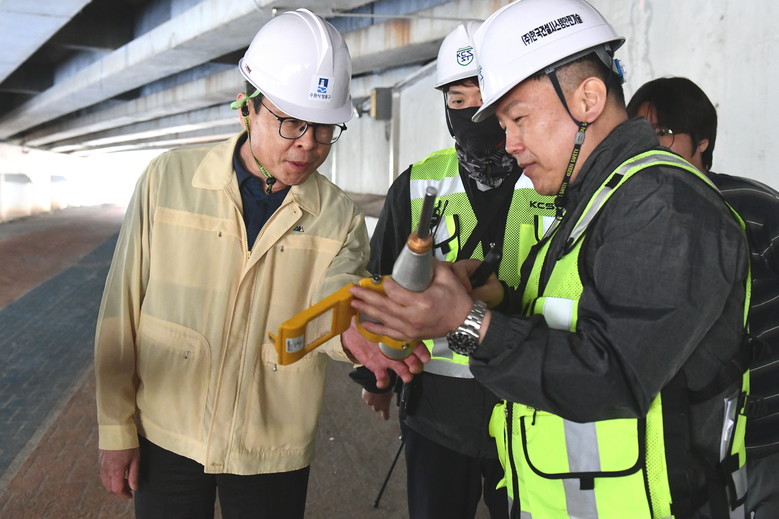 이번 정밀안전진단은 지난 3월 16일부터 오는 6월 3일까지 진행되며, 육안조사와 비파괴시험 등을 통해 교량의 구조적 안전성을 종합적으로 점검하고 있다. 특히 균열, 백태 등 외관 상태를 면밀히 조사하고, 고소작업차를 활용한 근접 외관 조사와 상부구조물 탄성시험 등을 통해 눈에 보이지 않는 미세 손상까지 확인하고 있다.