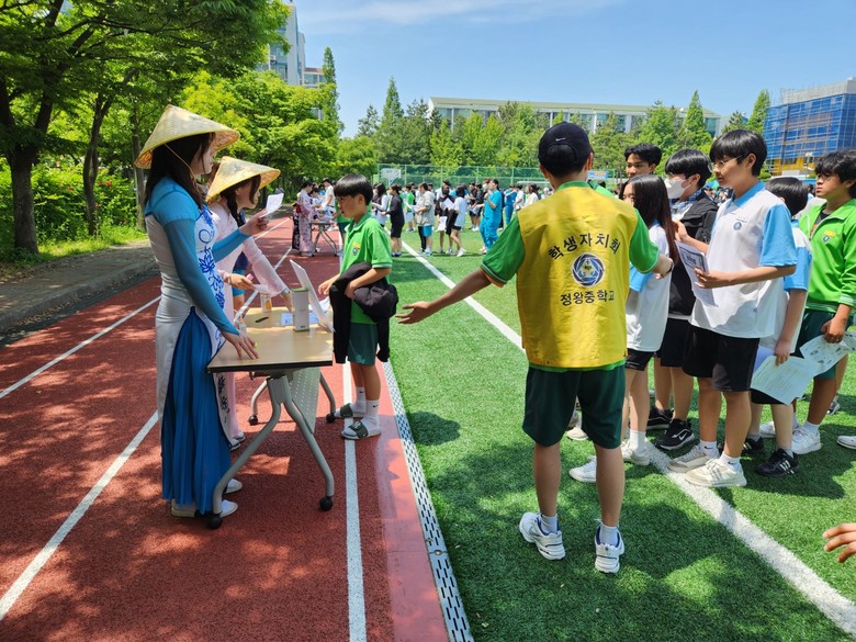 이번 행사에서 교실 속 다문화 국적의 학생들이 증가하고 있는 요즈음 한국뿐만 아니라 지구촌의 다양한 문화를 알아가는 시간을 마련하였다. 이를 위해 학생자치회 학생들과 함께 5개의 나라(베트남, 중국, 몽골, 일본, 한국) 부스를 준비하여 문화별(화폐, 디저트, 국기 등) 퀴즈를 풀고 미션 활동지를 완성하는 활동을 하였다.