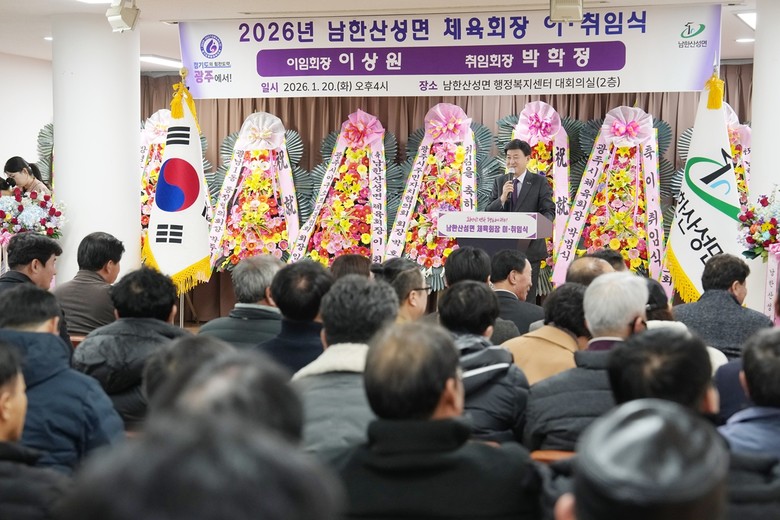 이번 이·취임식에서는 남한산성면 체육회 발전에 기여해 온 이상원 회장(남한산성면 이장협의회장)이 이임하고 박학정 회장(광주시 장애인체육회 부회장)이 신임 회장으로 취임했다.