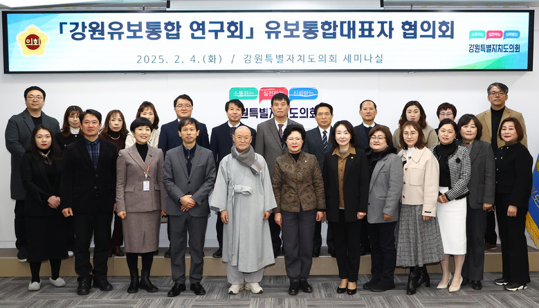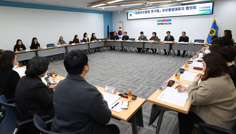 [강원도 세계타임즈=김민석 기자] 제11대 강원특별자치도의회의원 연구 모임인 「강원유보통합 연구회」(회장 원미희 의원)가 4일 도의회 세미나실에서 간담회를 개최하고 강원유보통합 성공을 위한 강원자치도의회의 역할을 모색하였다.