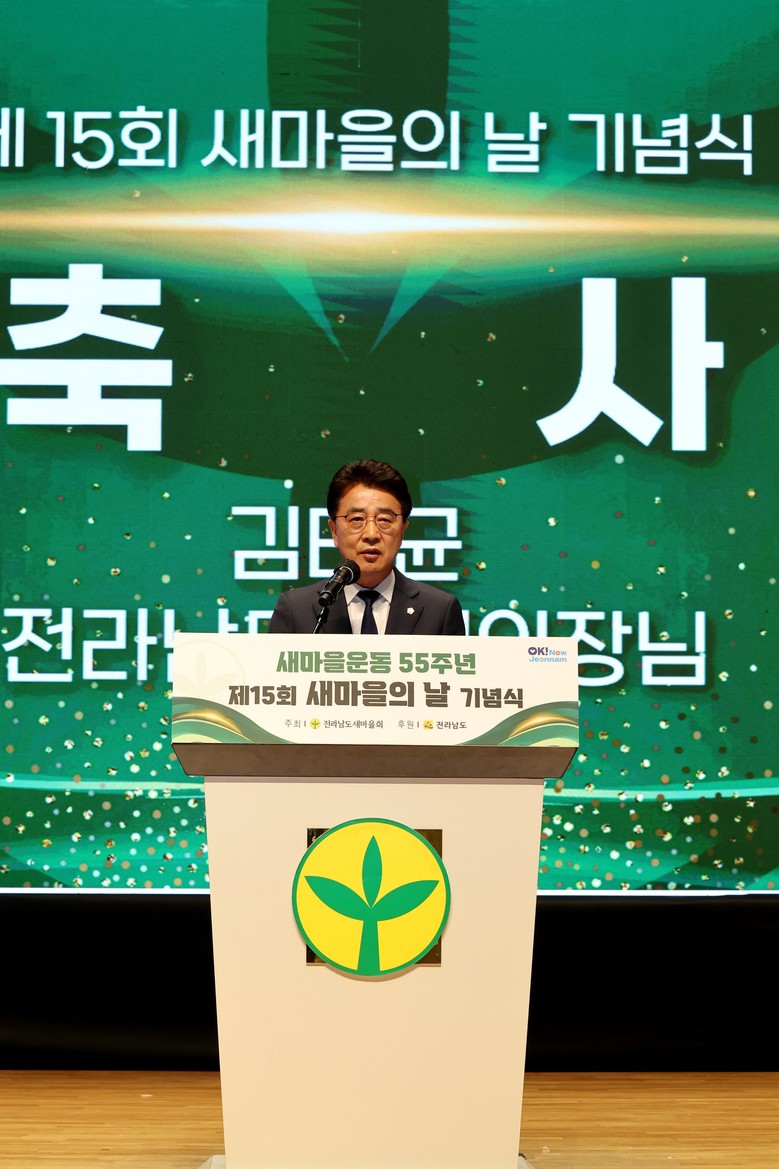 [전남 세계타임즈=우덕현 기자] 김태균 전라남도의회 의장은 4월 28일 전남도청 김대중 강당에서 개최된 제15회 새마을의 날 기념식에 참석하여 유공자 표창 수여와 함께 “새마을정신의 숭고한 가치를 되새기고 널리 이어가는 계기가 되길 바란다”고 밝혔다.