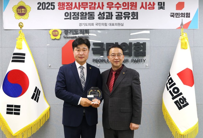 [경기도 세계타임즈=송민수 기자] 경기도의회 건설교통위원회 이영주 의원(국민의힘, 양주1)은 11월 24일(월) 경기도의회 국민의힘 회의실에서 열린 ‘2025년 행정사무감사 우수의원 시상식 및 의정활동 성과 공유회’에서 행정사무감사 우수의원으로 선정되는 영예를 안았다.