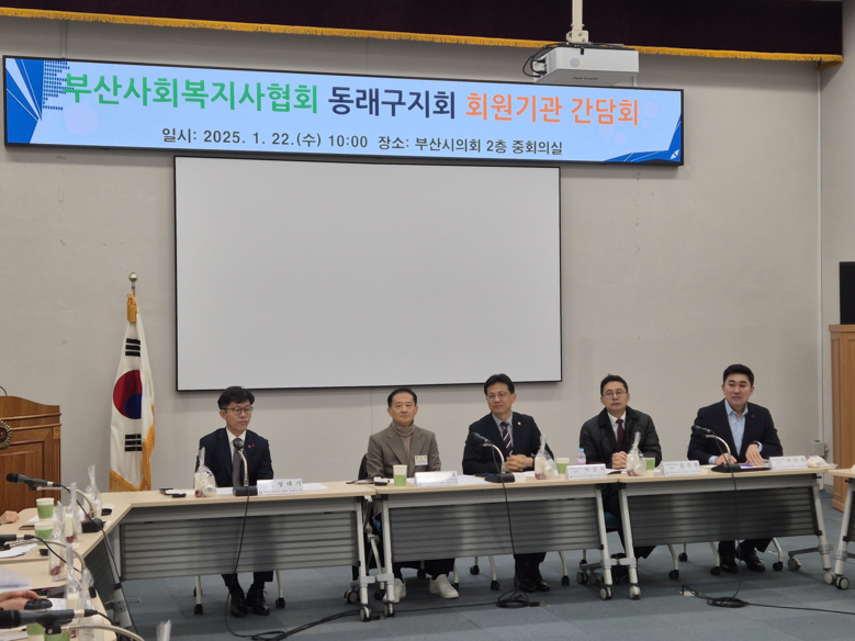 [부산 세계타임즈=이용우 기자] 부산광역시의회 박중묵, 서국보, 송우현 의원(동래구, 국민의힘)은 2025년 1월 22일(수), 부산광역시의회 2층 중회의실에서 ‘부산시사회복지사협회 동래구지회 회원기관 간담회’를 진행하였다.