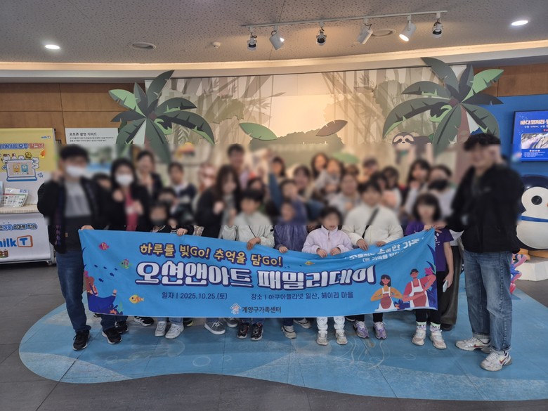 [계양구 세계타임즈=심하린 기자] 인천 계양구가족센터는 지난 10월 25일 지역 내 초등학생 자녀를 둔 11가구 30명의 가족을 대상으로 ‘오션앤아트 패밀리데이(하루를 빚Go! 추억을 담Go!)’ 체험나들이 프로그램을 진행했다.