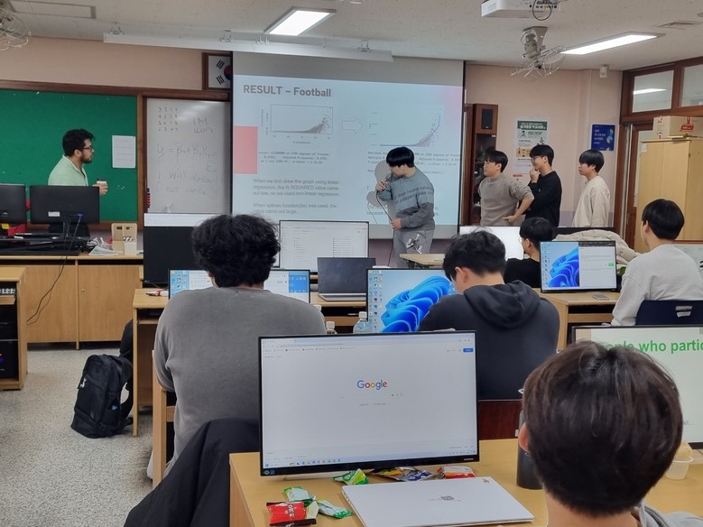 수업에 참여한 2학년 ○○○ 학생은 “관련 지식이 부족해 어려움을 겪었지만 선생님과 친구들에게 모르는 내용을 질문하며 이해할 수 있었다. 데이터와 알고리즘을 변경한다면 나의 진로 분야에도 적용할 수 있을 것 같고, 특히 수업이 영어로 진행되어 더욱 의미 있었다.”고 소감을 전했다.