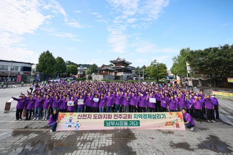 [전주=세계타임즈 = 이영임 기자] 신천지예수교 증거장막성전 도마지파 전주교회(담임 최중일·이하 신천지 전주교회)와 전주 풍남문시장 상인회(회장 김홍기 이하 풍남문상인회)가 지난 16일 지역경제 살리기 운동에 함께 나섰다.