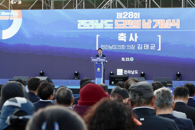김태균 의장은 이날 축사를 통해 “전남에 대한 긍지와 자부심으로 자리에 함께 해 주신 도민 여러분께 감사드린다”며 “전남은 케이컬쳐의 새로운 시대를 열어가고 있으며 따뜻한 행복공동체로서 상생과 발전을 도모해 나가고 있다”고 강조했다.