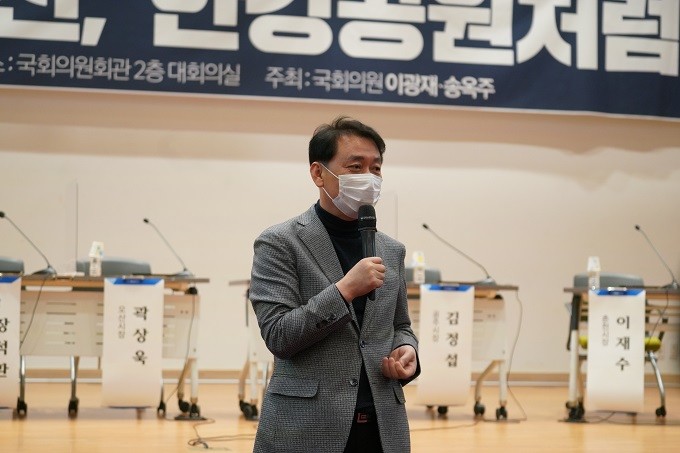 더불어민주당 이광재 의원(원주시갑, 국회 외교통일위원회)이 송옥주 의원(국회 여성가족위원회)과 함께 6일 오후 2시 국회의원회관 대회의실에서 ‘전국 도심하천, 국가관리로 한강공원처럼!’ 토론회를 주최했다. 토론회에서는 전국 도심하천에 쾌적한 수변공원을 조성하기 위해 하천법 일부 개정이 필요하다는 내용을 골자로 다양한 의견이 제기됐다.