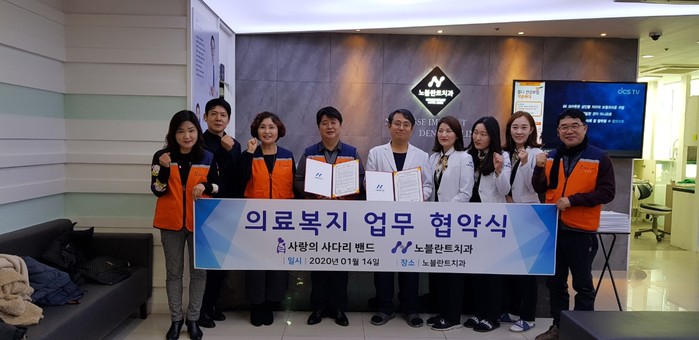 노블란트치과 정성우 원장은 “매월 다양한 봉사활동으로 우리 사회에 귀감이 되고 있는 사랑의 사다리 밴드 봉사단체와 오늘 업무협약식을 통해서 지역사회를 위해서 따뜻한 나눔을 실천하겠다.”고 말했다.