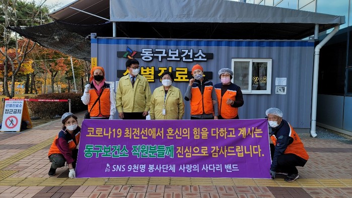 장선애 동구보건소장은 “오늘 사랑의 사다리 밴드 봉사단체에서 맛있는 통닭을 지원해 주어서 큰 힘과 위안이 된다.”면서 “동구보건소는 코로나19 종식을 위해서 최선의 노력을 다하겠다.”고 말했다.