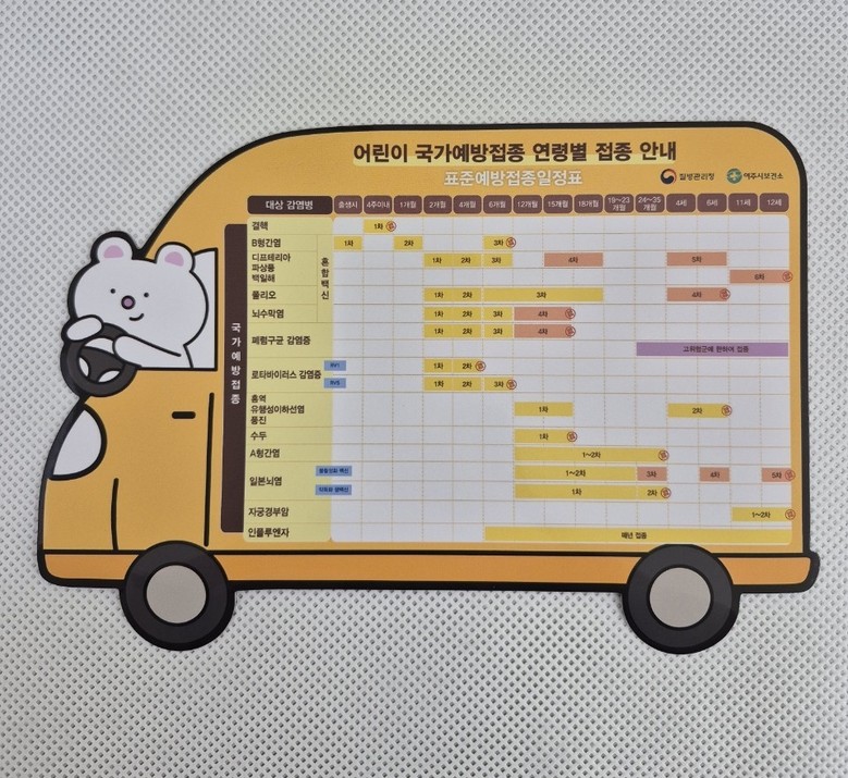 [여주시 세계타임즈=송민수 기자] 여주시보건소 보건행정과(과장 안선숙)는 관내 영유아의 건강한 성장을 지원하기 위해 ‘영유아 표준 예방접종 일정표’가 담긴 안내 자석판을 제작·배부했다고 밝혔다.
