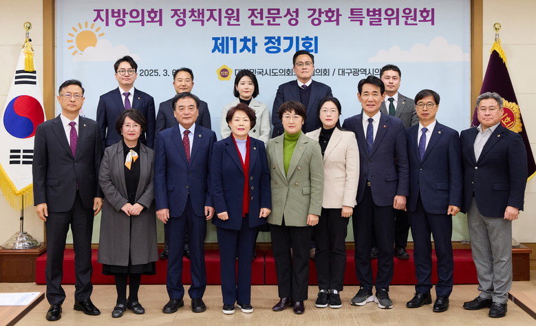 [대구 세계타임즈=한윤석 기자] 대구시의회(의장 이만규)는 3월 6일(목), 대구시의회에서 대한민국시도의회의장협의회 ‘지방의회 정책지원 전문성 강화 특별위원회’(위원장 이태손) 제1차 정기회를 개최했다.
