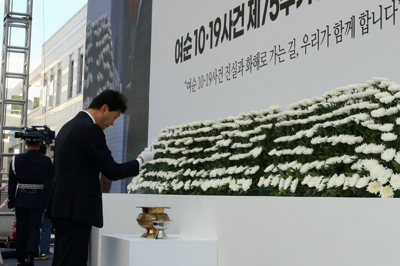 ‘여순 10·19사건 진실과 화해로 가는 길, 우리가 함께 합니다’라는 주제로 열린 이날 추념식은 김영록 전남도지사, 김대중 전남교육감, 여순사건 유족 등 500여 명이 참석한 가운데 묵념, 추모 영상 상영, 헌화 및 분향, 인사 말씀, 추념사, 유족 사연 낭독, 추모 공연 순으로 진행됐다.