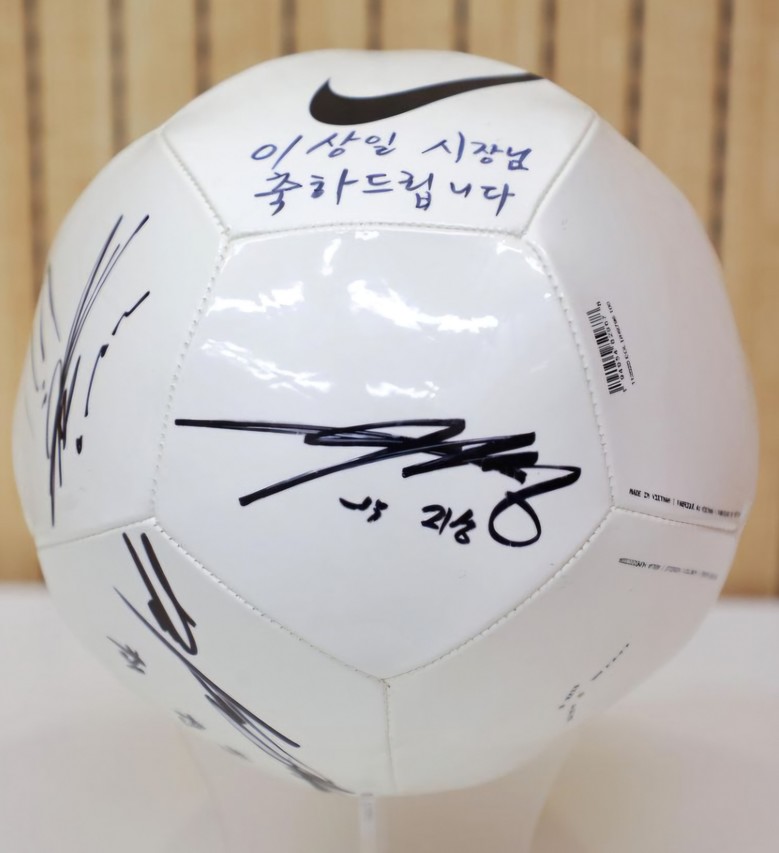 | ▲ 박지성 선수를 비롯해 대한민국 남자 국가대표팀 소속 선수들이 이상일 용인특례시장에게 보낸 사인볼 |