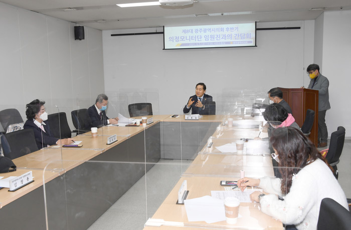 [광주=세계타임즈 손권일 기자] 김용집 광주광역시의회 의장은 5일 시의회 시민소통실에서 제8대 광주시의회 후반기 의정모니터단 임원진(단장 박종선)과의 간담회를 가졌다.