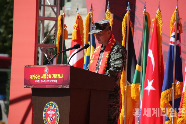 김태성 해병대사령관은 기념사를 통해 “조국을 수호하겠다는 일념으로 서울을 되찾고 자유와 희망을 지켜냈던 참전 영웅들을 영원히 기억할 것이다”라며, “앞으로도 해병대는 더욱 강한 힘으로 국가와 국민을 지켜나가겠다”고 결의를 다졌다.