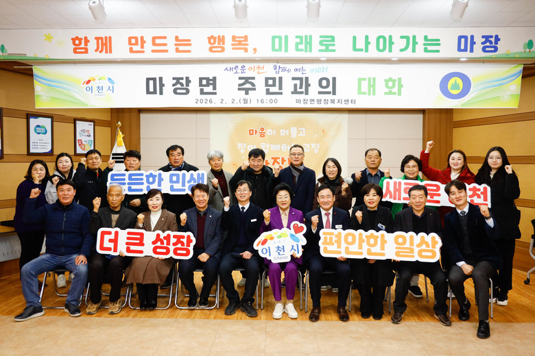 [이천시 세계타임즈=송민수 기자] 이천시(시장 김경희)는 지난 2월 2일 마장면 행정복지센터에서 열린 ‘2026년 마장면 주민과의 대화’를 끝으로 올해 첫 주민 소통 행보를 마무리했다. 이번 자리는 생활 속 불편과 지역 현안을 직접 공유하고, 주민 의견을 시정에 적극 반영하기 위해 마련됐다.