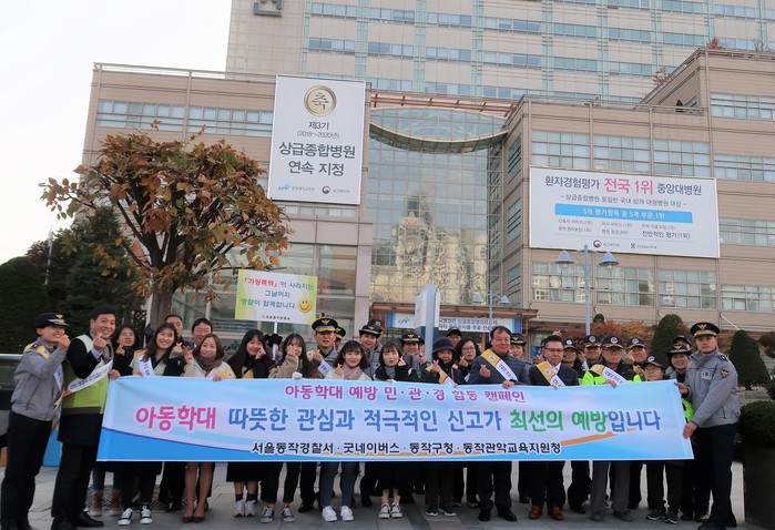 민·관·경(서울동작경찰서, 굿네이버스, 동작구청, 동작관악교육지원청)이 합동으로 진행한 이번‘아동학대 예방·홍보’ 캠페인은 유동인구가 많은 중앙대학교병원·중앙대학교 앞에서 진행되었다. 이번 캠페인을 통해 아동학대 인식개선 및 학대징후 발견 시 ‘112‘로 신고하는 등 올바른 대응방법을 안내함으로써 아동보호와 국내 아동학대에 대한 실태와 경각심을 제고하는 기회를 마련했다.