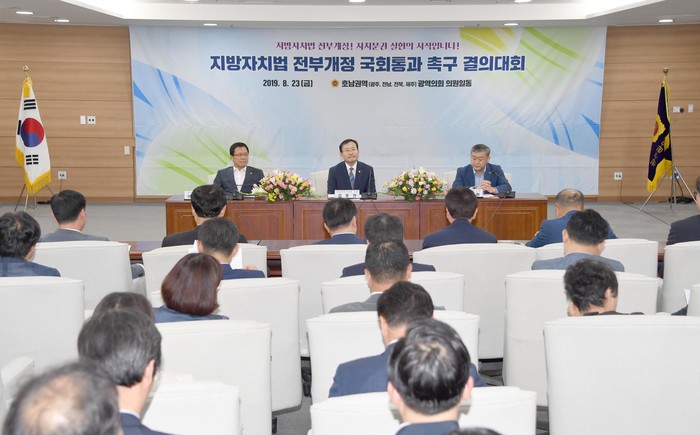 30년 만에 전면 개정되는 지방자치법 전부개정안이 제20대 국회 임기만료 전에 필히 통과될 수 있도록 호남권역 3개 시도의회는 앞으로 굳세게 연대해나갈 계획이다“고 밝혔다.