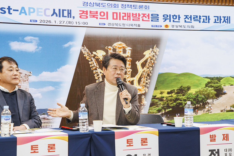 [경북 세계타임즈=한윤석 기자] 경상북도의회는 지난 27일 경상북도청 다목적홀에서 APEC 및 문화관광분야 전문가 및 관계공무원 등과 함께 ‘Post-APEC시대, 경북의 미래발전을 위한 전략과 과제’라는 주제로 정책토론회를 개최했다.