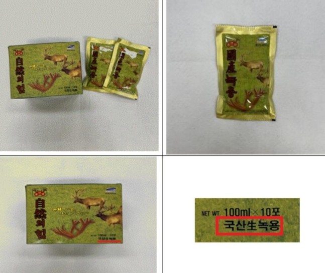 충북 괴산 소재의 제조업체 '풍산원토속가공실'은 녹용이 각각 6.9%, 7.5%만 함유된 가공식품에 '국내 생(生)녹용'만 표기해 판매했다. 판매량은 311t(톤), 판매액은 311억원에 달한다.