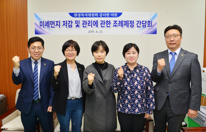 [울산=세계타임즈 이호근 기자] 울산시의회 김시현 의원(환경복지위원회)은 23일 오후 4시 의원 사무실에서 울산시의회 전영희 환경복지위원장, 장윤호 산업건설위원장, 윤덕권 행정자치위원장, 김선미 의원과 함께 미세먼지 저감에 관한 조례 제정을 위한 간담회를 가졌다.