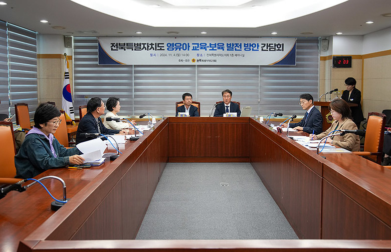 [전북특별자치도의회=세계타임즈 이상호 기자] 전북특별자치도의회 교육위원회 진형석 위원장(전주2)은 지난 4일 도의회 1층 세미나실에서 ‘전북특별자치도 영유아 교육ㆍ보육 발전 방안 간담회’를 개최했다.