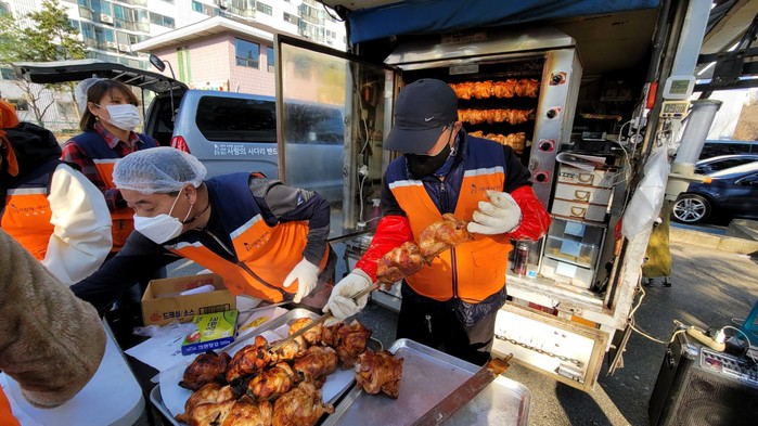 ㈜동건운수 이선엽 대표는 “오늘 목상동 지역어르신들을 위해서 통닭 봉사를 할 수가 있어서 행복과 보람을 느낀다.”고 말했다.