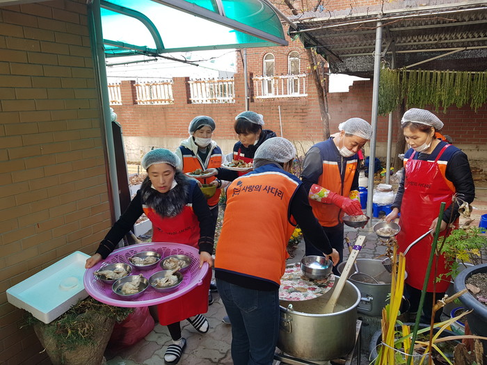 경남아파트 경로당 주용식 총무는 “오늘 추운날씨에 사랑의 사다리 밴드에서 삼계탕 닭죽 묵무침 부침개를 지원해 주어서 큰힘과 위안이 된다.”면서 감사함을 전했다.