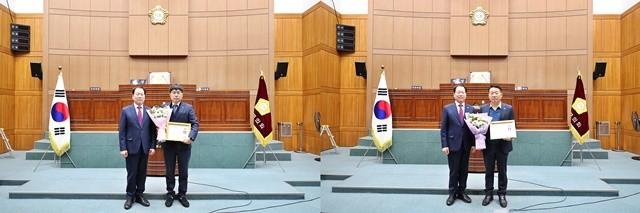 [부안군 세계타임즈 = 강옥선 기자] 부안군의회 박태수 산업건설위원장과 박병래 예결위원장이 지방의정 및 지역사회 발전에 기여한 공로를 인정받아 전북시군의회의장협의회에서 주관하는 ‘지방의정봉사상’을 받았다.