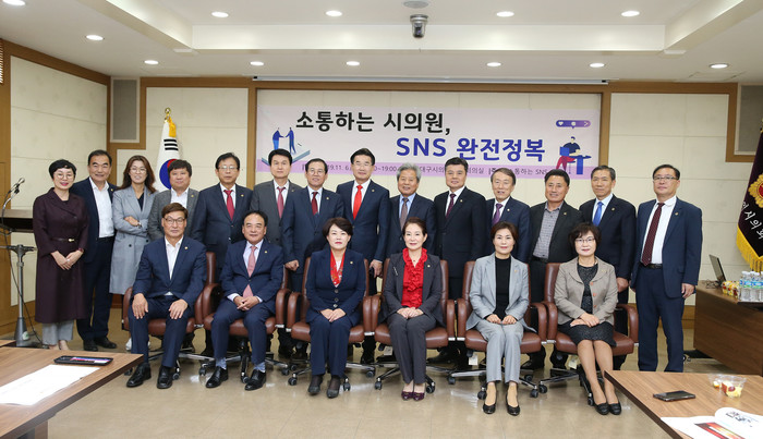 [대구=세계타임즈 한성국 기자] 대구광역시의회 의원연구단체 「소통하는 SNS」(대표 이태손 의원, 회원 19명)는 11월 6일(수) 오후 3시 시의회 3층 회의실에서 연구단체 회원을 대상으로 “소통하는 시의원, SNS 완전정복”을 주제로 교육을 실시했다.