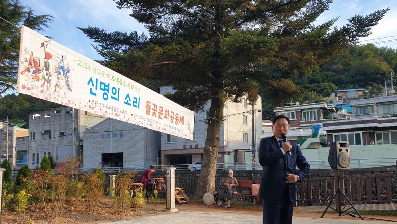 [전남 세계타임즈=우덕현 기자] 전라남도의회 강문성 기획행정위원장(더불어민주당, 여수3)은 지난 10월 2일 광림동 연등천 들꽃공원에서 주민화합과 복지향상을 위한 마을문문화행사에 참석해 “그동안 방치된 들꽃공원 재단장과 마을문화행사의 예산 확보 및 조속한 사업추진을 위해 노력한 성과가 마을에 활기를 불어넣고 정주여건이 크게 개선되는 시너지효과를 만들고 있다"며 환영의 뜻을 밝혔다.