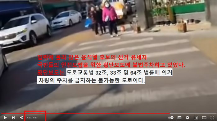 | ▲ 횡단 보도위에 선거유세차량 |